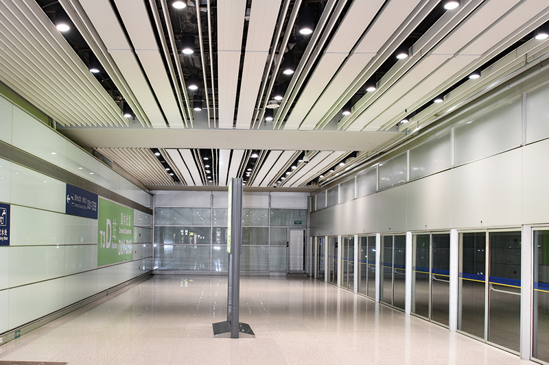 吊頂輻射板采用銅管機(jī)械漲接鋁合金型材金屬輻射板作為輻射源,以熱水為介質(zhì),輻射板串聯(lián)帶狀布置,吊頂安裝。