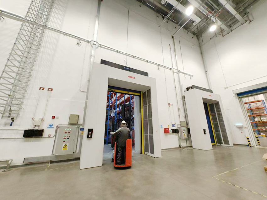 5米高,負24度低溫冷庫物流出入口,夏季經(jīng)常霧滿為患,地面結冰,甲方期盼行業(yè)中找到可靠解決方案……