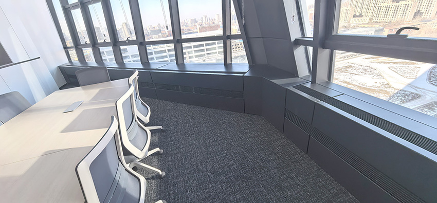 中科院長春光機所打造的光電信息產(chǎn)業(yè)園是北方最大的綜合型生產(chǎn)研發(fā)基地,承載著國家重大科研項目,致力于解決芯片 “卡脖子” 問題。三期建筑面積近 22 萬平方米,幕墻保溫累計長達 7.5 公里,業(yè)主考察后整體選用康平自主技術低能耗高效幕墻對流散熱器??灯饺盗心粔ι崞?,風機能耗、換熱量、噪聲全部通過國家空調質量檢測中心嚴格檢測并優(yōu)化,全項指標在本領域比對中,遠超歐美同行性能,實現(xiàn)零誤差??灯綄@S精裝工藝,幕墻殼體幾億個精密裝配尺寸全部量身定制,采用機械化生產(chǎn),充分展現(xiàn)了康平人精益求精的工匠精神和智慧。2024 年,康平用自主發(fā)明專利技術和原創(chuàng)的工業(yè)設計,表達康平極簡主義個性風格,助力打造北方最大的華為智能芯片基地。