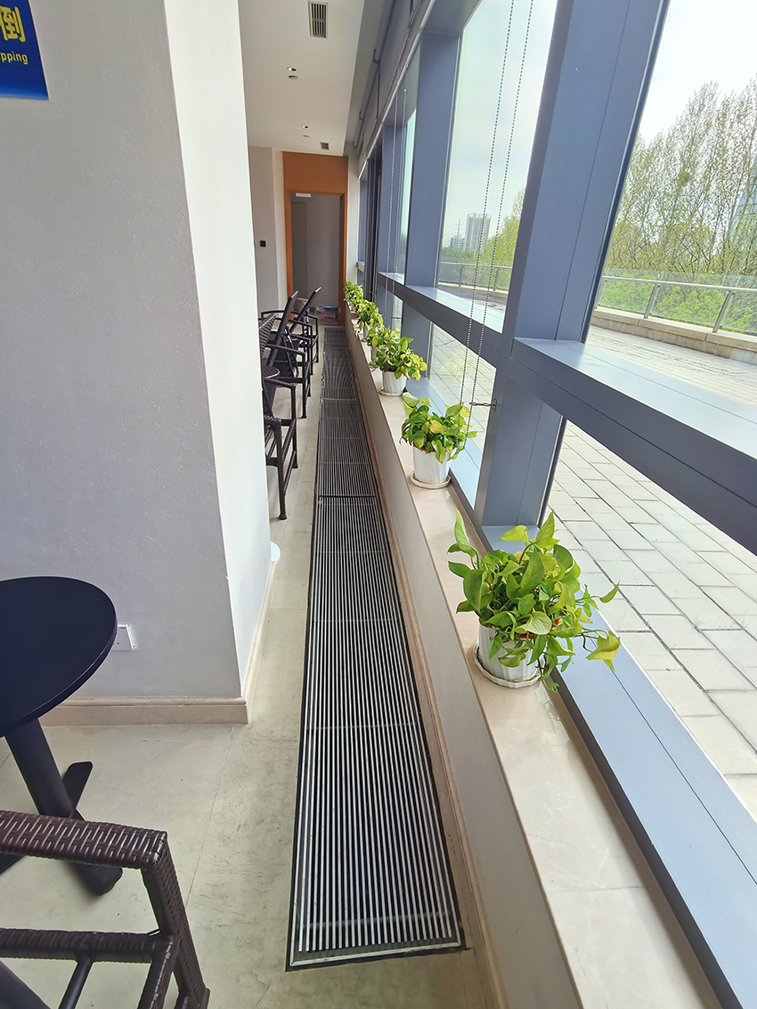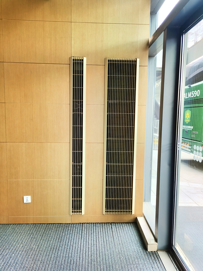 選用產(chǎn)品:頂吹冷暖風(fēng)幕,大門側(cè)吹風(fēng)幕,明裝幕墻對流散熱器,